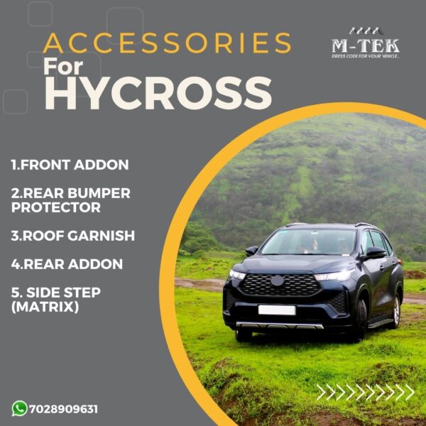 The Toyota Hycross Body Kit is a premium accessory package designed to enhance the SUV’s sporty and dynamic appearance. Typically including components such as a redesigned front bumper, rear bumper extensions, side skirts, and a rear spoiler, the body kit gives the Hycross a more aggressive and aerodynamic profile. Made from high-quality, durable materials, it ensures a perfect fit and integrates seamlessly with the vehicle’s design.